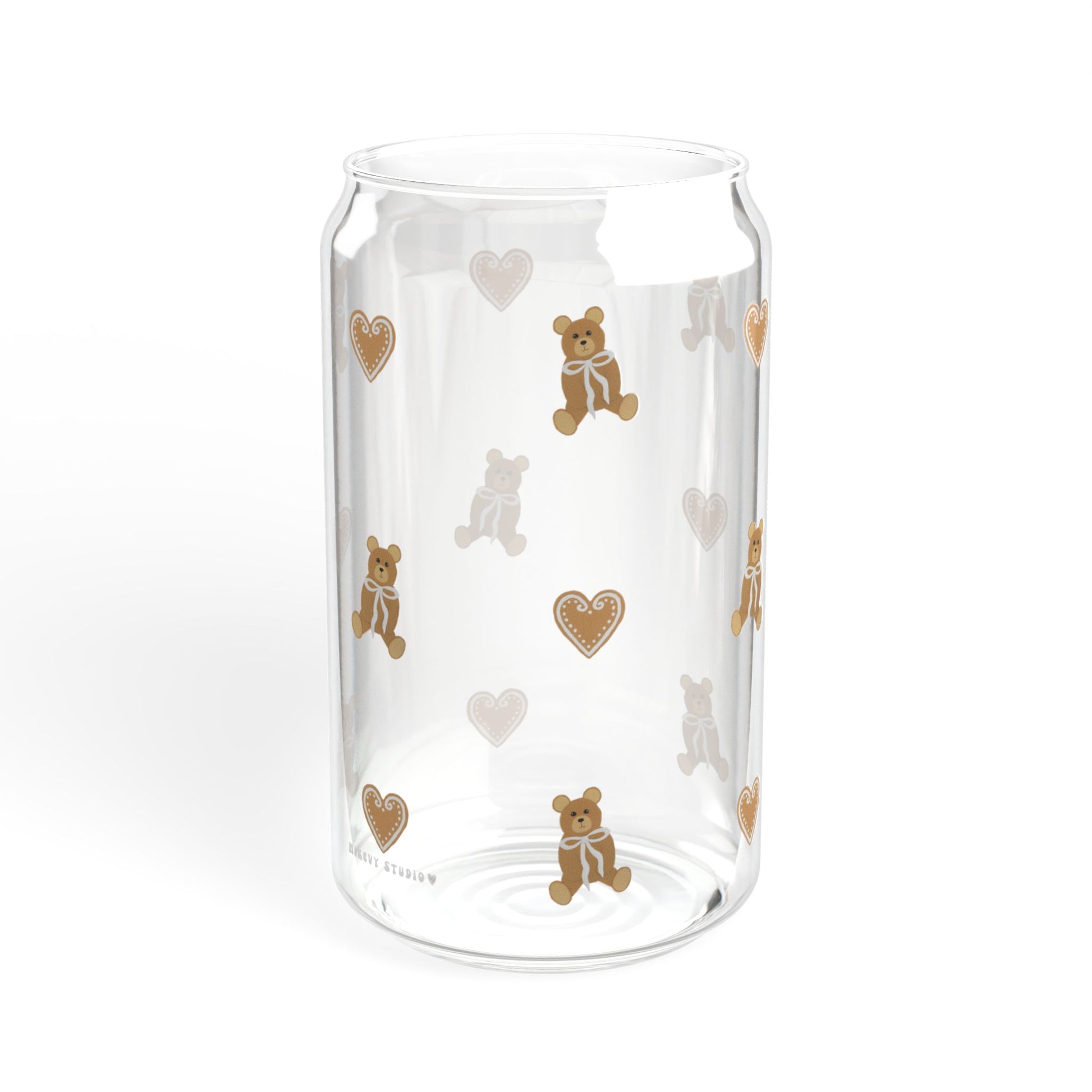 Glass Sipper - Teddy Bear with a White Bow & Gingerbread Heart Design